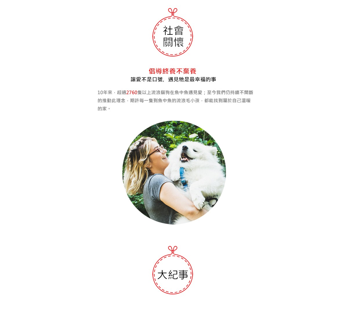 - 魚中魚發起「耶誕送愛 飼料捐贈」活動,捐助財團法人流浪動物之家基金會-飼料3000磅。